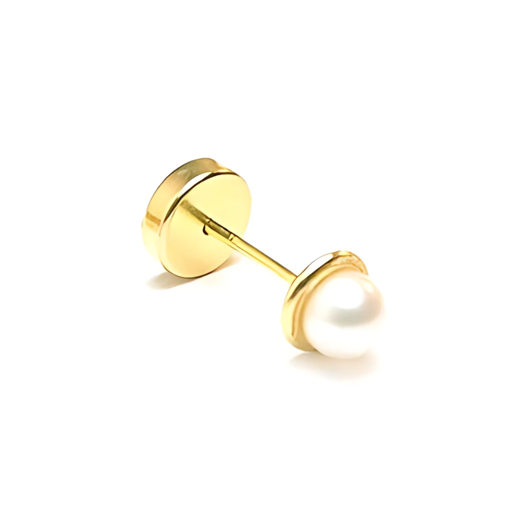 Un clásico elevado por el detalle. El abridor Perla con Virola es una evolución sofisticada del diseño tradicional. Esta pieza destaca por integrar una perla símil de brillo nacarado dentro de un delicado marco de metal pulido llamado «virola». Esta montura no solo abraza la perla resaltando su forma, sino que también le otorga una mayor superficie de brillo y una presencia más robusta y elegante en la oreja. Diseñado bajo los más altos estándares de comodidad, cuenta con un sistema de cierre de tuerca de seguridad redondeada que protege la piel y permite un uso prolongado sin molestias. Es la elección predilecta para quienes buscan una joya que combine la ternura de las perlas con un diseño más estructurado y moderno, ideal tanto para bebés como para adultos que desean un toque de luz refinado.