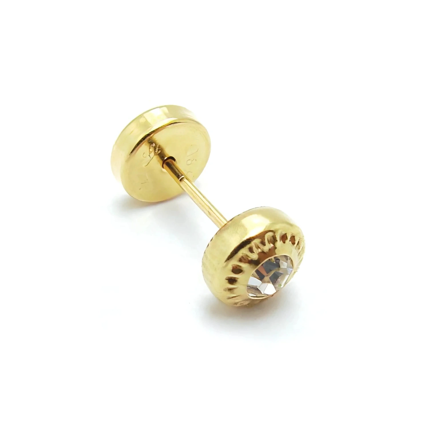 La fusión perfecta entre textura y luminosidad. Este modelo de abridor destaca por su piedra central de gran brillo, engarzada en una montura que presenta un delicado grabado perimetral. Esta «virola trabajada» con ondas sutiles no solo asegura la piedra de forma impecable, sino que añade un detalle artesanal que diferencia a esta pieza de los diseños lisos convencionales, capturando la luz desde múltiples texturas. Diseñado con el sistema de cierre de tuerca protectora redondeada, este abridor es sinónimo de confort absoluto. Es la elección ideal para quienes buscan una joya con «cuerpo» y una estética más elaborada, perfecta para resaltar en el uso diario con una seguridad total. Su diseño robusto pero refinado lo convierte en un básico con personalidad propia para cualquier colección.