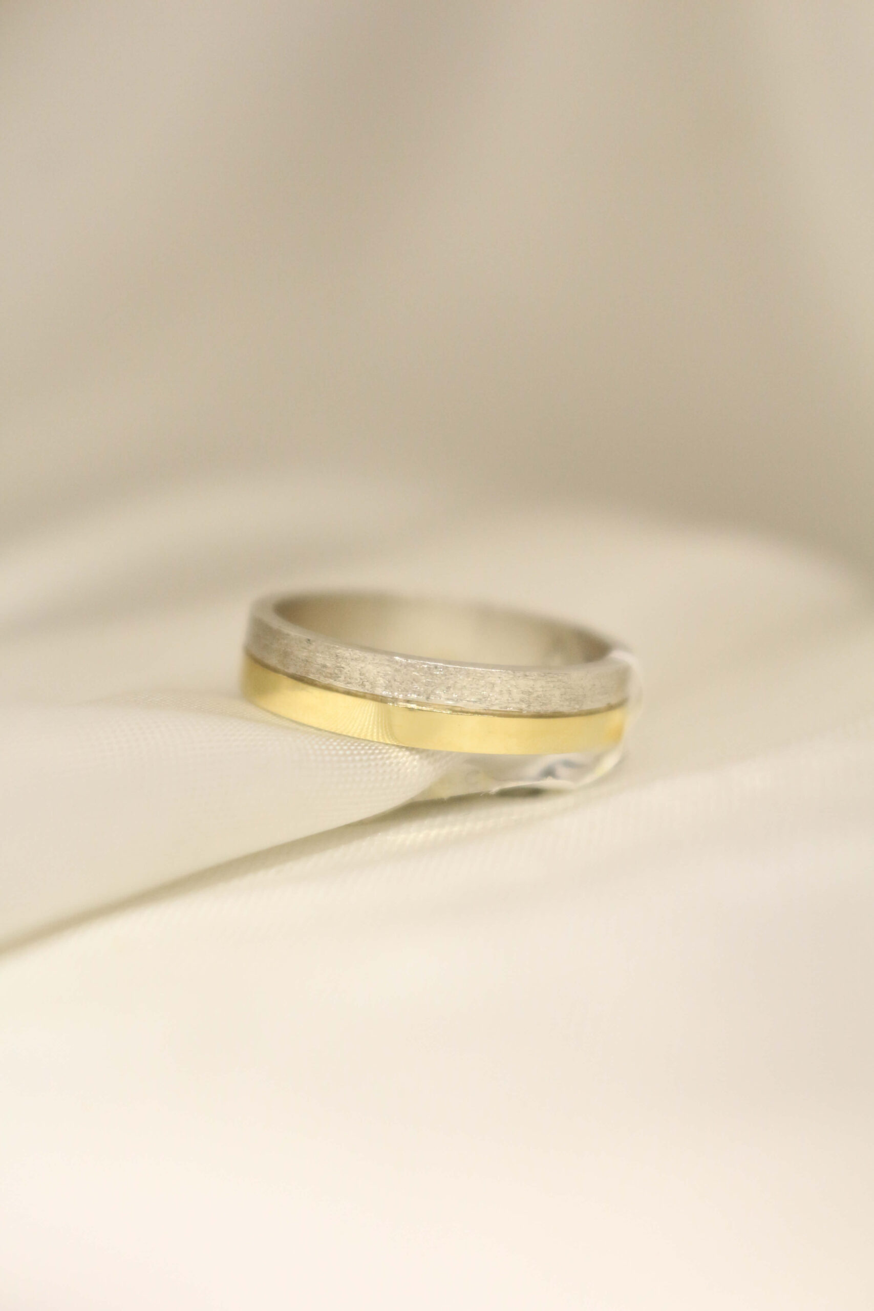 Alianza Cinta Combinada de Plata 925 y Duble (Lámina Delgada de Oro). Con Plata arenada un detalle que la hace diferente y aún más especial.