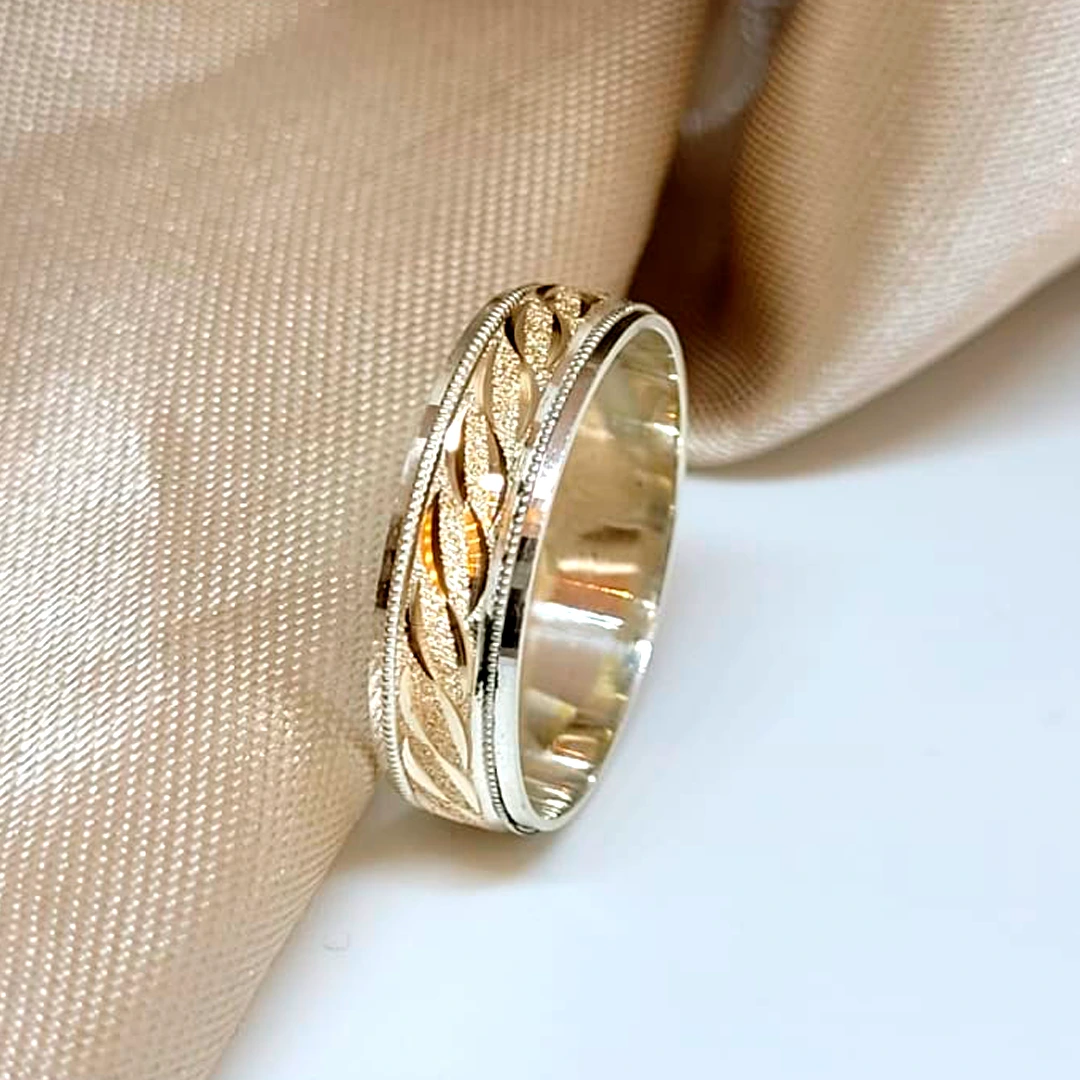 Alianza Facetada con Curvas de Plata 925 y Oro 14K. Un diseño bello y duradero.