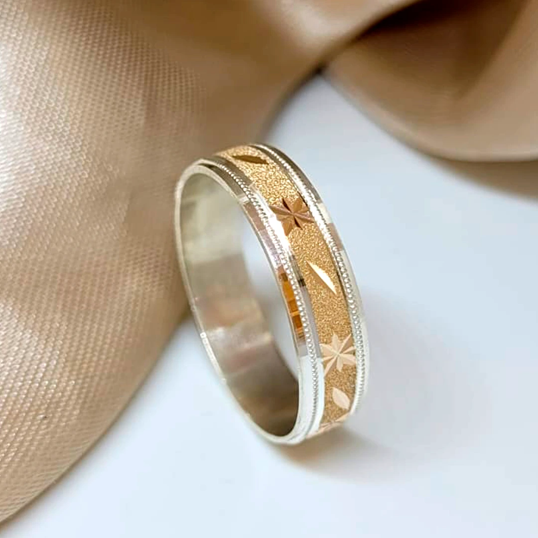 Alianza Facetada con Estrellas de Plata 925 y Oro 14K. Un diseño bello y duradero.