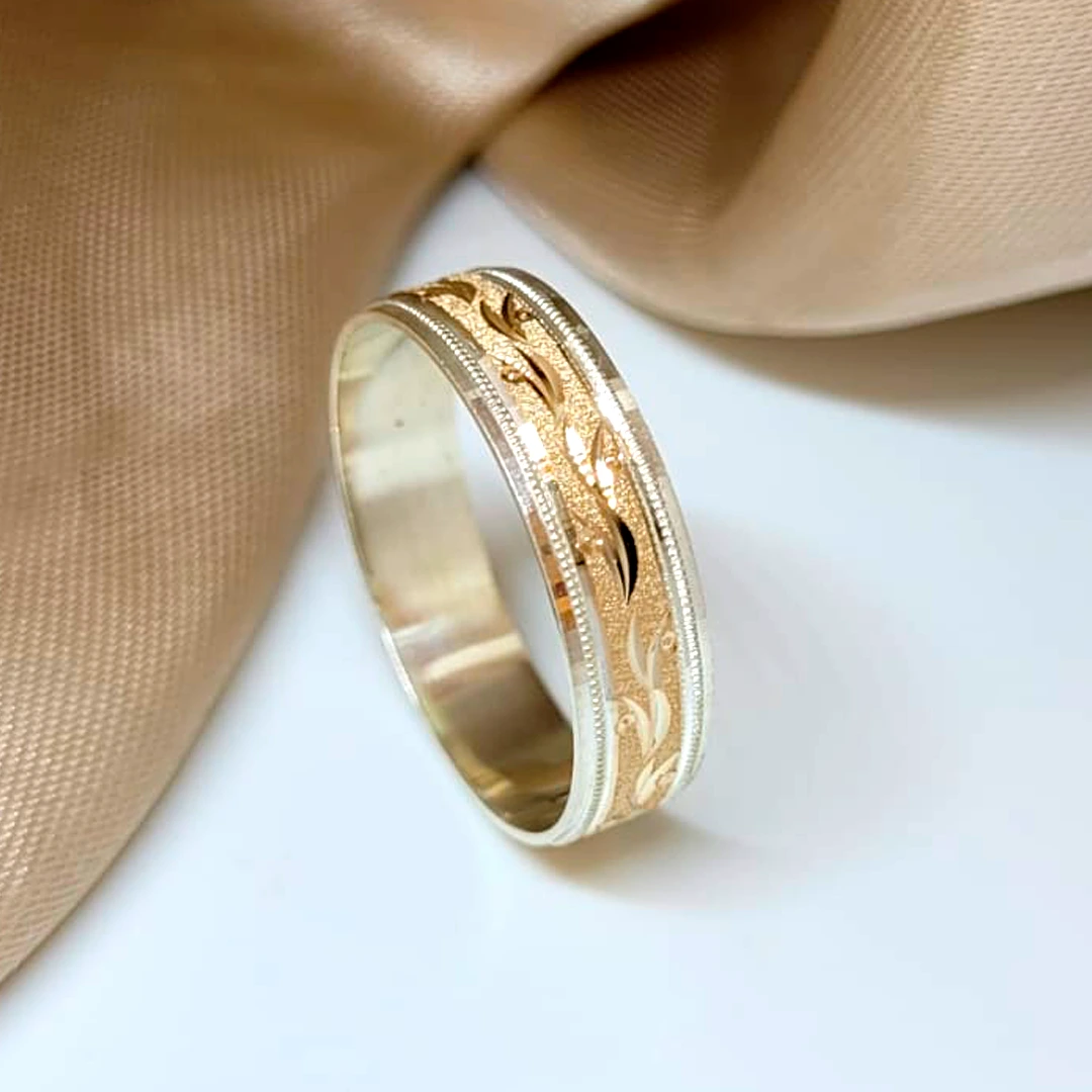 Alianza Facetada con Hojas de Plata 925 y Oro 14K. Un diseño bello y duradero.