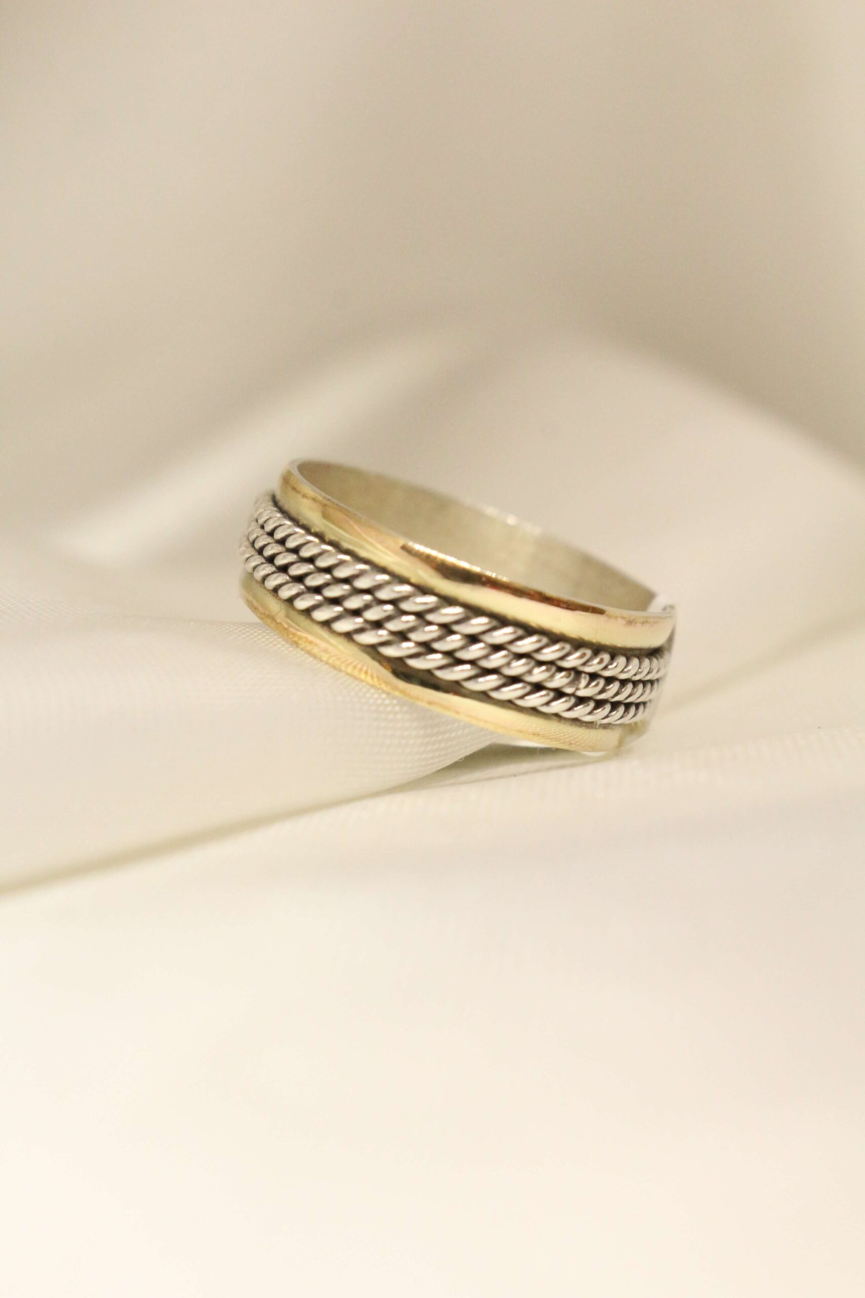Alianza Italiana Torbellino de Plata y Duble (Lámina Delgada de Oro). Con detalle trenzado haciéndolo un modelo importante y singular puesto en mano.