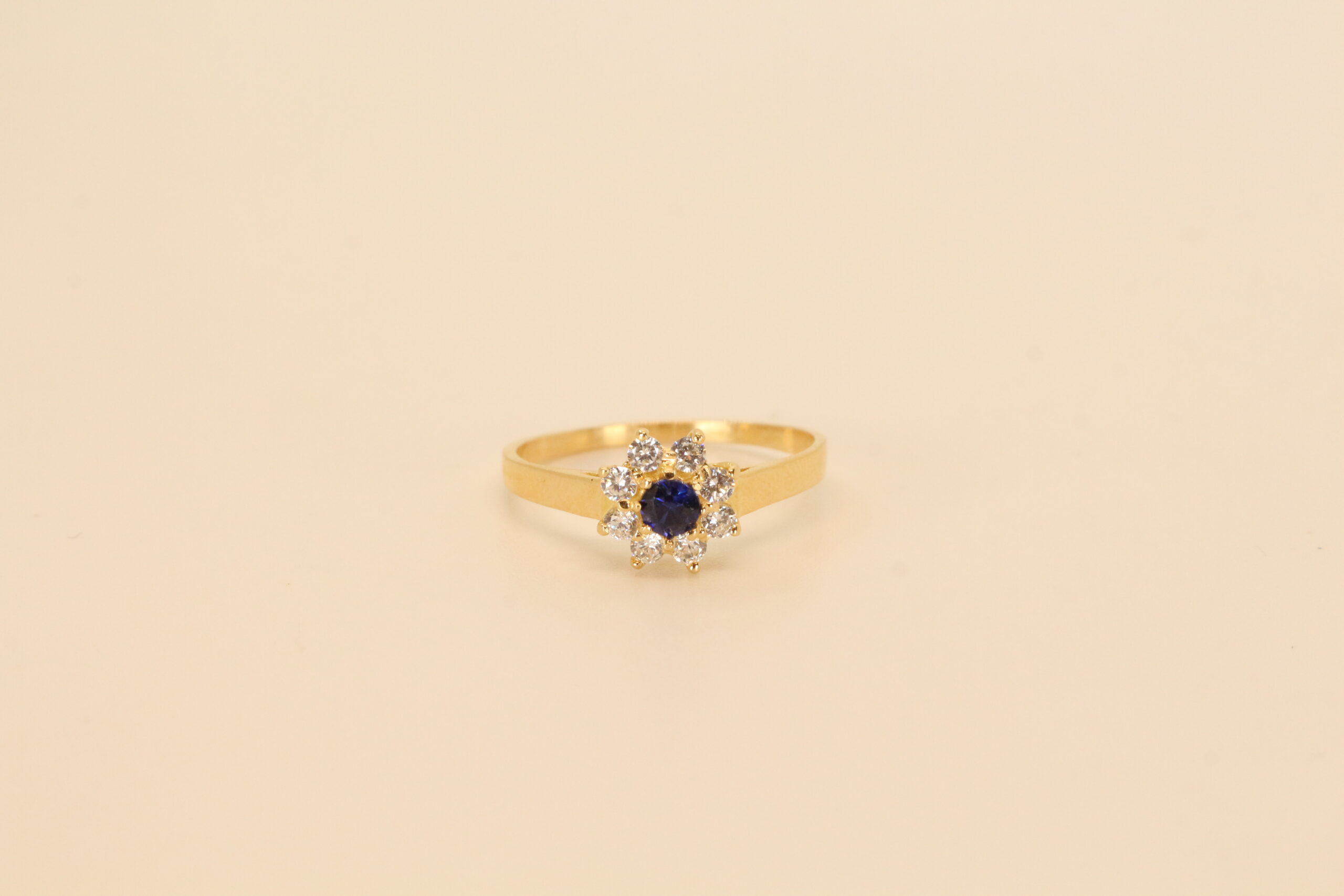 La elegancia de un jardín nocturno. El modelo Aster rinde homenaje a la forma estelar de la flor que le da nombre. Con una arquitectura tipo cluster, esta pieza de oro presenta un vibrante cubic azul central abrazado por un halo de cubics que multiplican su brillo. Un diseño de aire vintage y espíritu romántico, ideal para quienes buscan una joya con carácter, color y una distinción clásica que nunca pasa de moda.