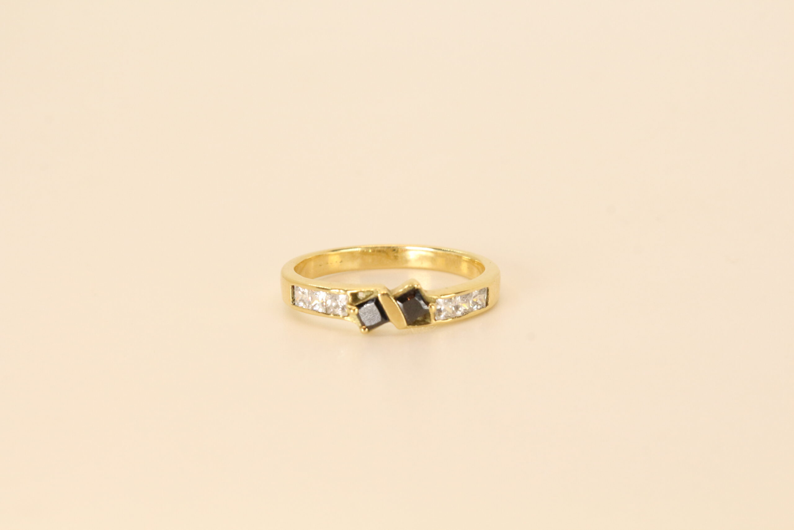 La armonía de los opuestos. El modelo Gemini destaca por su diseño arquitectónico y su cautivadora dualidad. Esta alianza de oro rompe con lo convencional al presentar dos cubics negros centrales, separados por un audaz corte diagonal que aporta un aire de vanguardia y sofisticación. Enmarcado por bandas de cubics blancos que realzan su brillo, es una pieza de contrastes marcados: luz y sombra, fuerza y delicadeza. Un anillo con carácter propio, ideal para quienes buscan una joya que simbolice una unión única o una personalidad decidida.