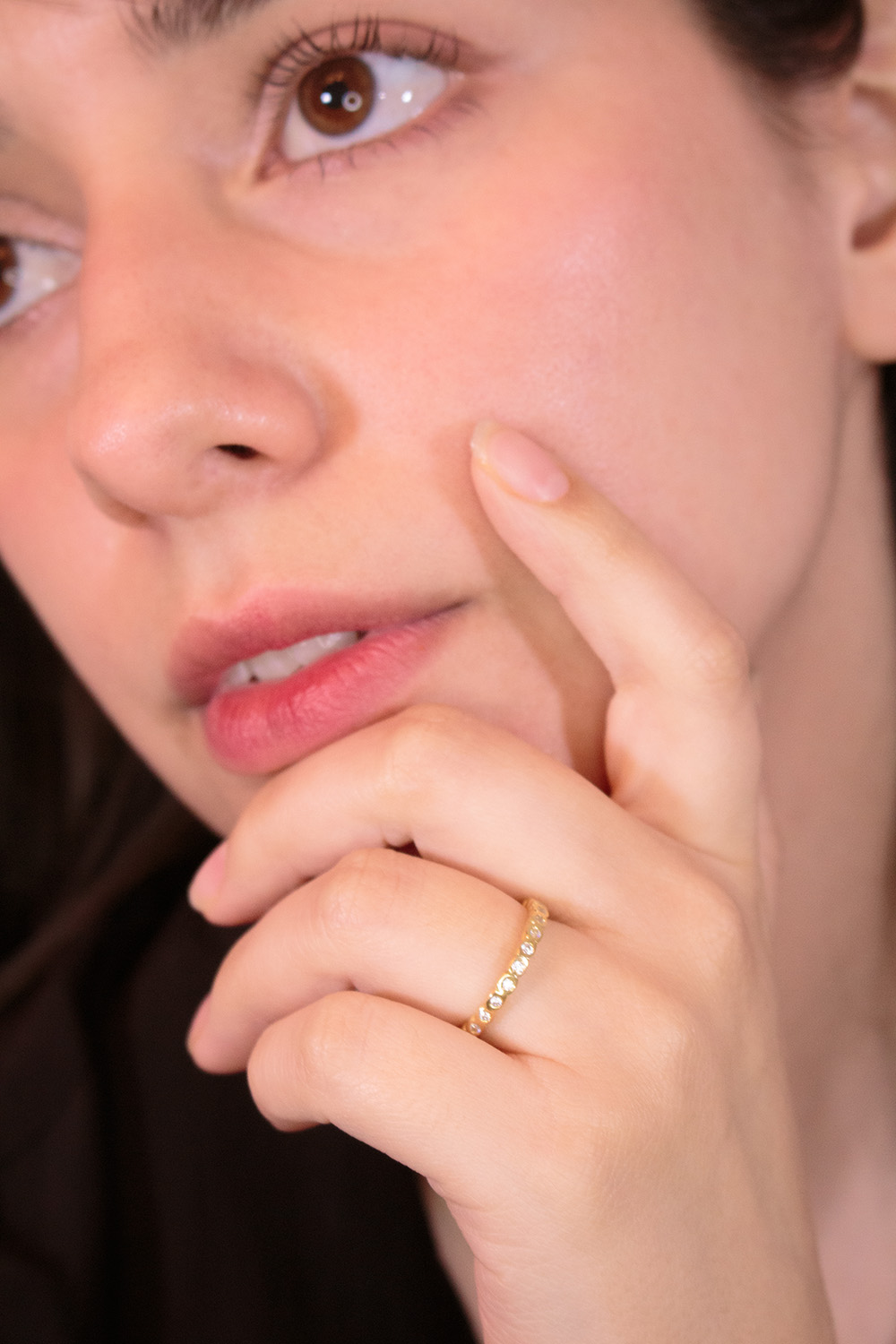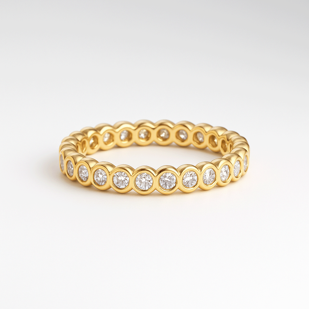 El Anillo Lytha deslumbra por su elegancia atemporal. Elaborado en oro amarillo 18k, presenta una delicada hilera de cubics engarzados en todo su contorno, reflejando la luz desde cada ángulo. Su diseño continuo simboliza la eternidad del amor y la belleza, convirtiéndolo en una pieza ideal para acompañar alianzas o lucir en solitario como toque de distinción.