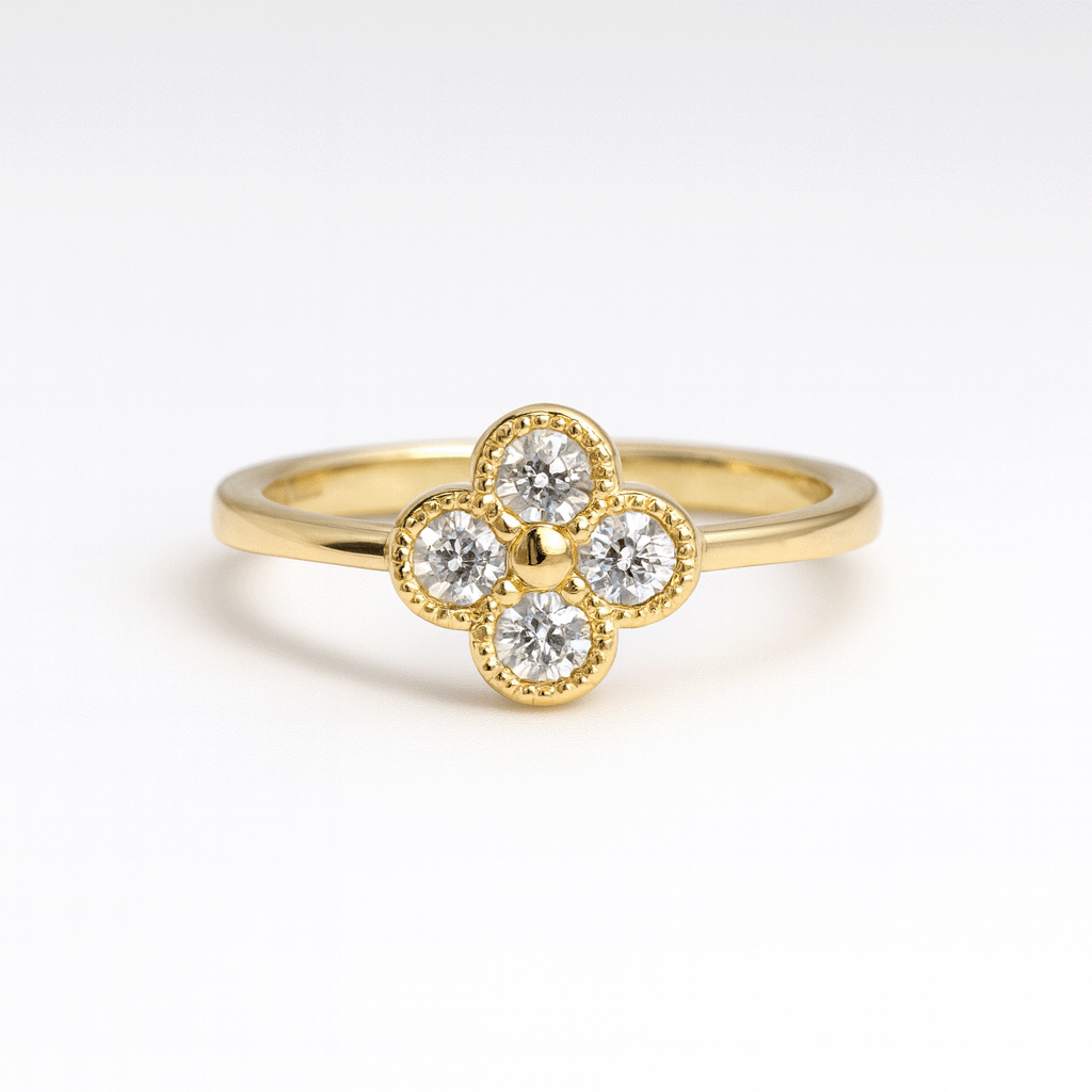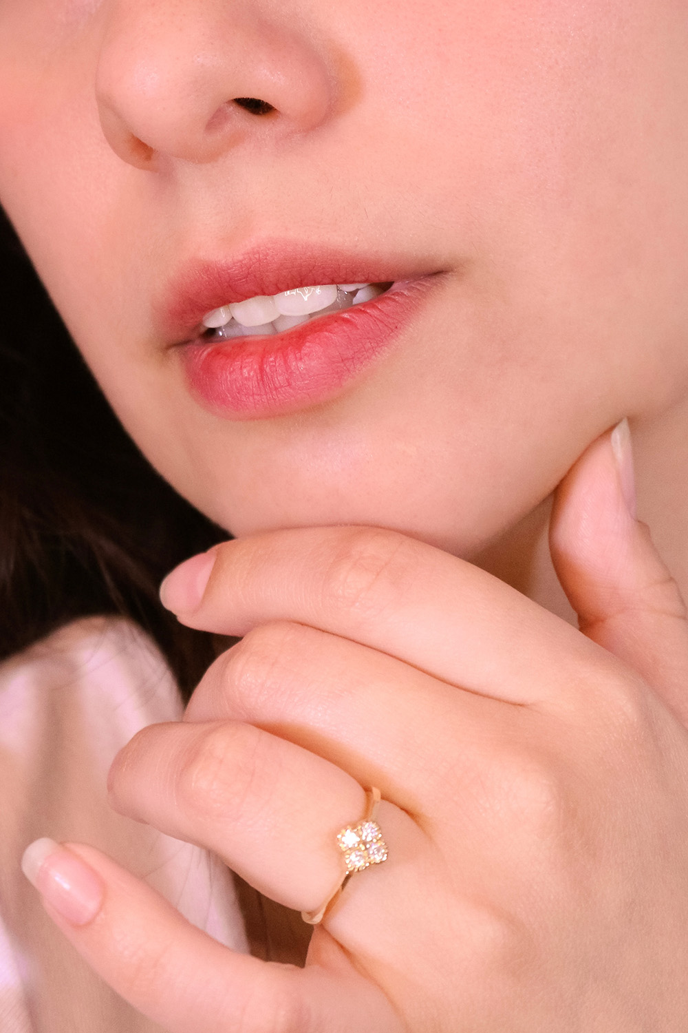 El Anillo Olianne destaca por su encanto clásico y su brillo delicado. Elaborado en oro amarillo 18k, presenta un diseño floral formado por cubics cuidadosamente engarzados, que reflejan la luz desde cada ángulo con elegancia natural. Su forma equilibrada y femenina lo convierte en una joya ideal para quienes buscan dulzura, sofisticación y un toque romántico en una pieza atemporal.