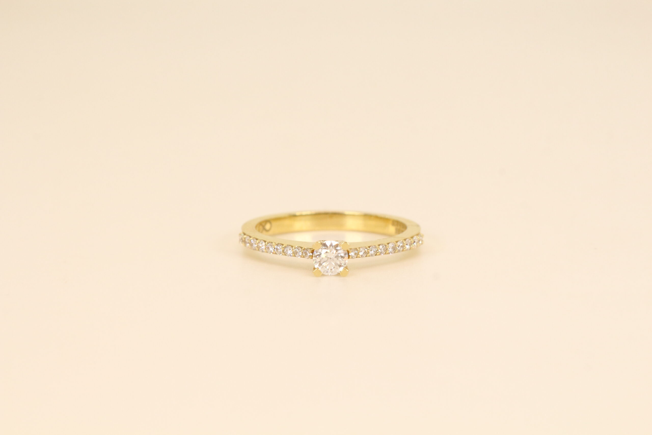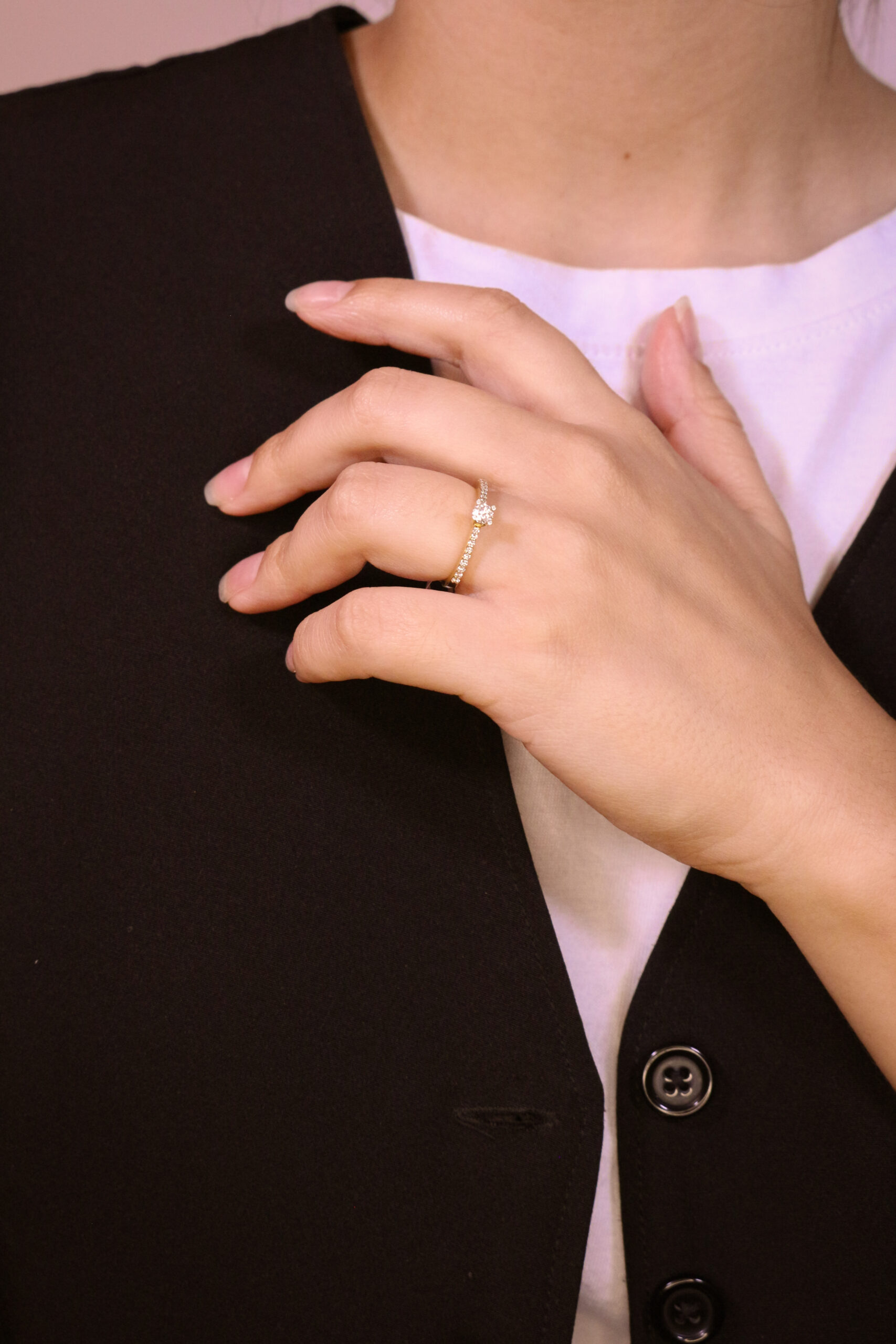 El epicentro de todos los reflejos. Inspirado en la estrella más brillante de nuestro firmamento, el anillo Sirio es una pieza diseñada para quienes no temen destacar. Este modelo eleva el concepto del solitario tradicional al integrar una deslumbrante hilera de gemas en sus hombros, creando un camino de luz continua que guía la mirada hacia su imponente piedra central. Su estructura combina la fuerza de un engaste de cuatro garras con la delicadeza del pavé lateral, logrando una joya que brilla con intensidad desde cualquier ángulo. Es el equilibrio perfecto entre el lujo moderno y la elegancia clásica, ideal para celebrar un compromiso inolvidable o un logro personal que merece ser recordado con el máximo esplendor.