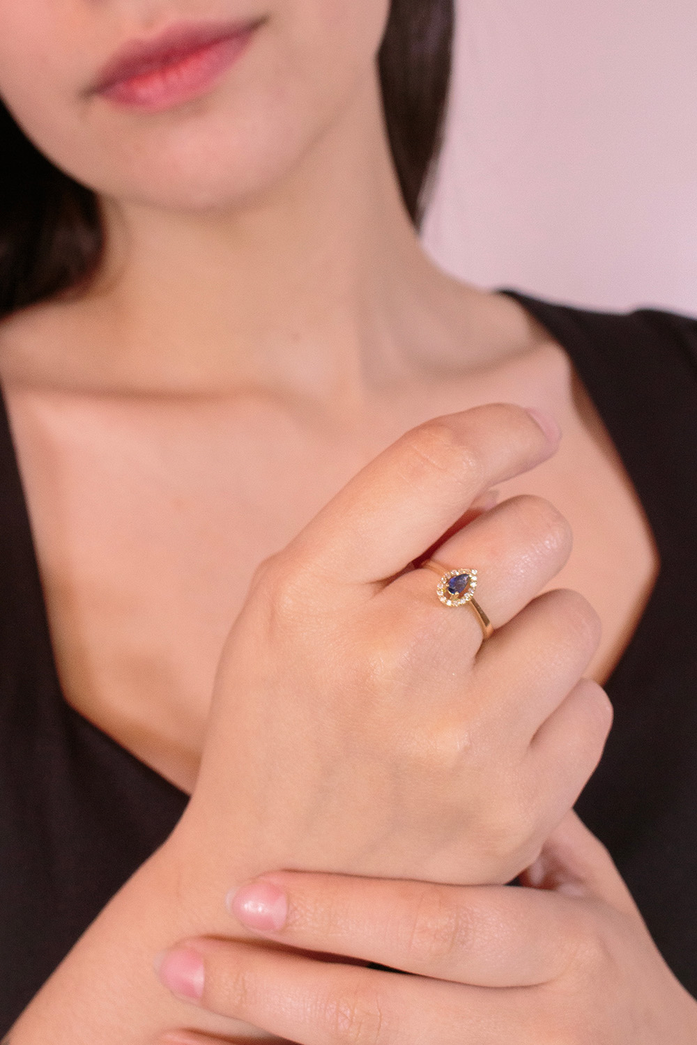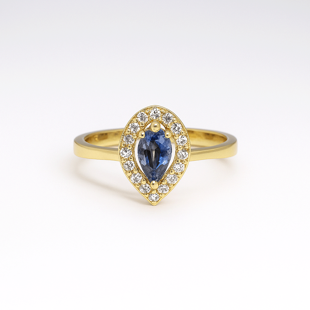 El Anillo Thalyn es una joya que combina elegancia clásica y encanto contemporáneo. Elaborado en oro amarillo 18k, presenta una piedra central azul en forma de lágrima, rodeada por un delicado halo de cubics blancos que realzan su brillo y profundidad. Inspirado en la serenidad del agua y la fuerza interior, el Thalyn es un símbolo de equilibrio, belleza y distinción, ideal para quienes buscan una pieza refinada con un toque de color único.