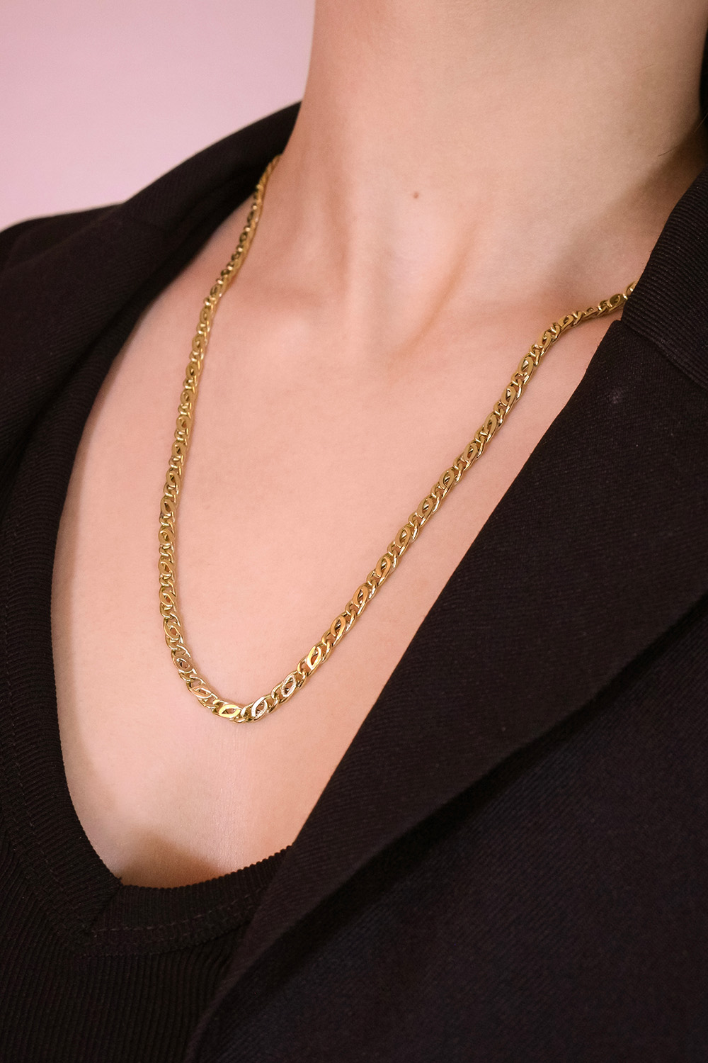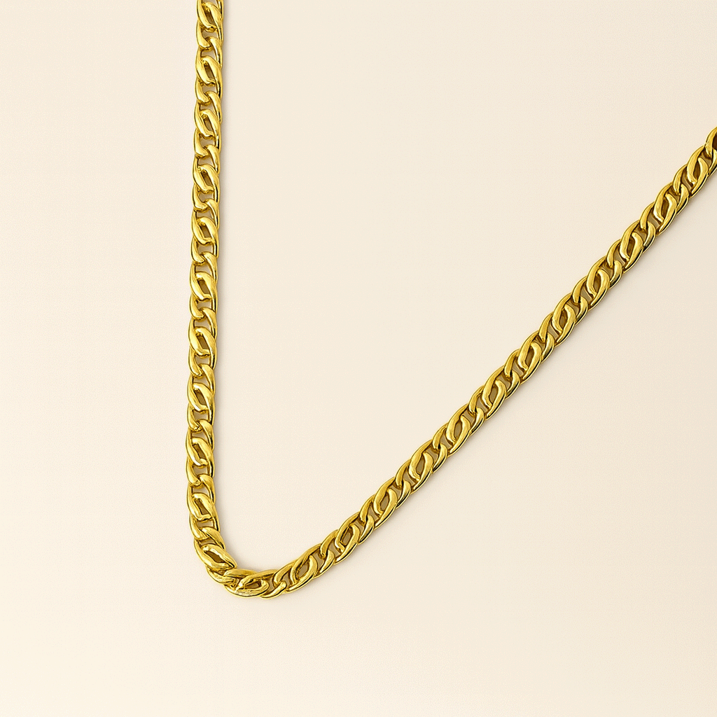 Eleva tu colección de joyería con nuestra exclusiva Cadena Juliana. Este diseño se distingue por sus eslabones entrelazados con una arquitectura única, creando una pieza que no solo es un accesorio, sino una declaración de estilo. Su acabado pulido captura la luz desde cualquier ángulo, ofreciendo un brillo sutil pero impactante. Es la pieza perfecta para quienes buscan algo diferente a lo clásico, sin perder la elegancia. Ideal para lucir sola como protagonista de tu look o para combinar con tus dijes favoritos de mayor peso visual.