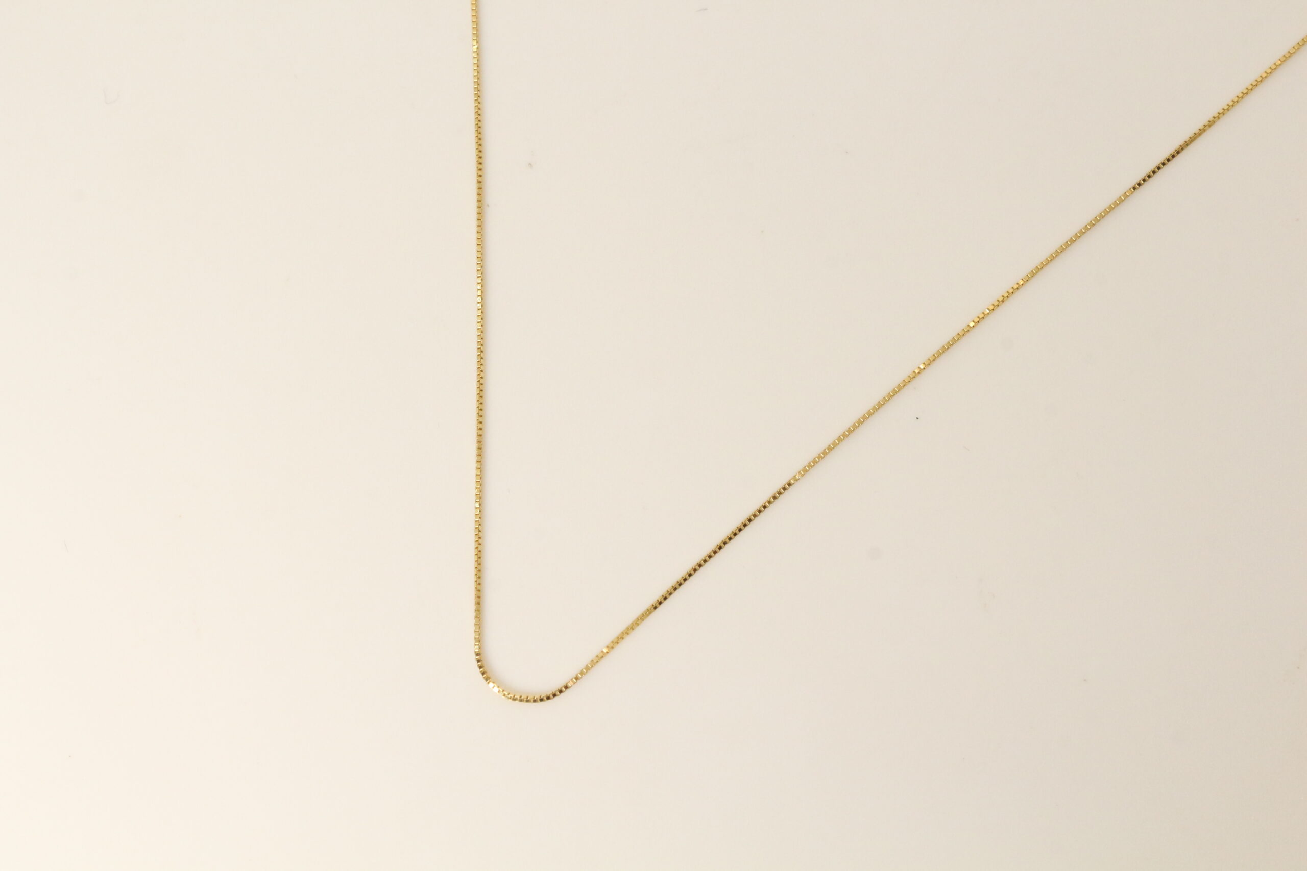La Cadena Veneciana es sinónimo de sofisticación discreta. Su diseño único está compuesto por pequeños eslabones cuadrados o cúbicos, lo que crea un efecto de línea limpia y uniforme. Este diseño geométrico le da una solidez superior a su apariencia delgada, haciéndola perfectamente segura para tus dijes más preciados. Su superficie lisa y pulida atrapa la luz sutilmente, proporcionando un brillo que realza, sin opacar, la belleza del colgante que elijas.