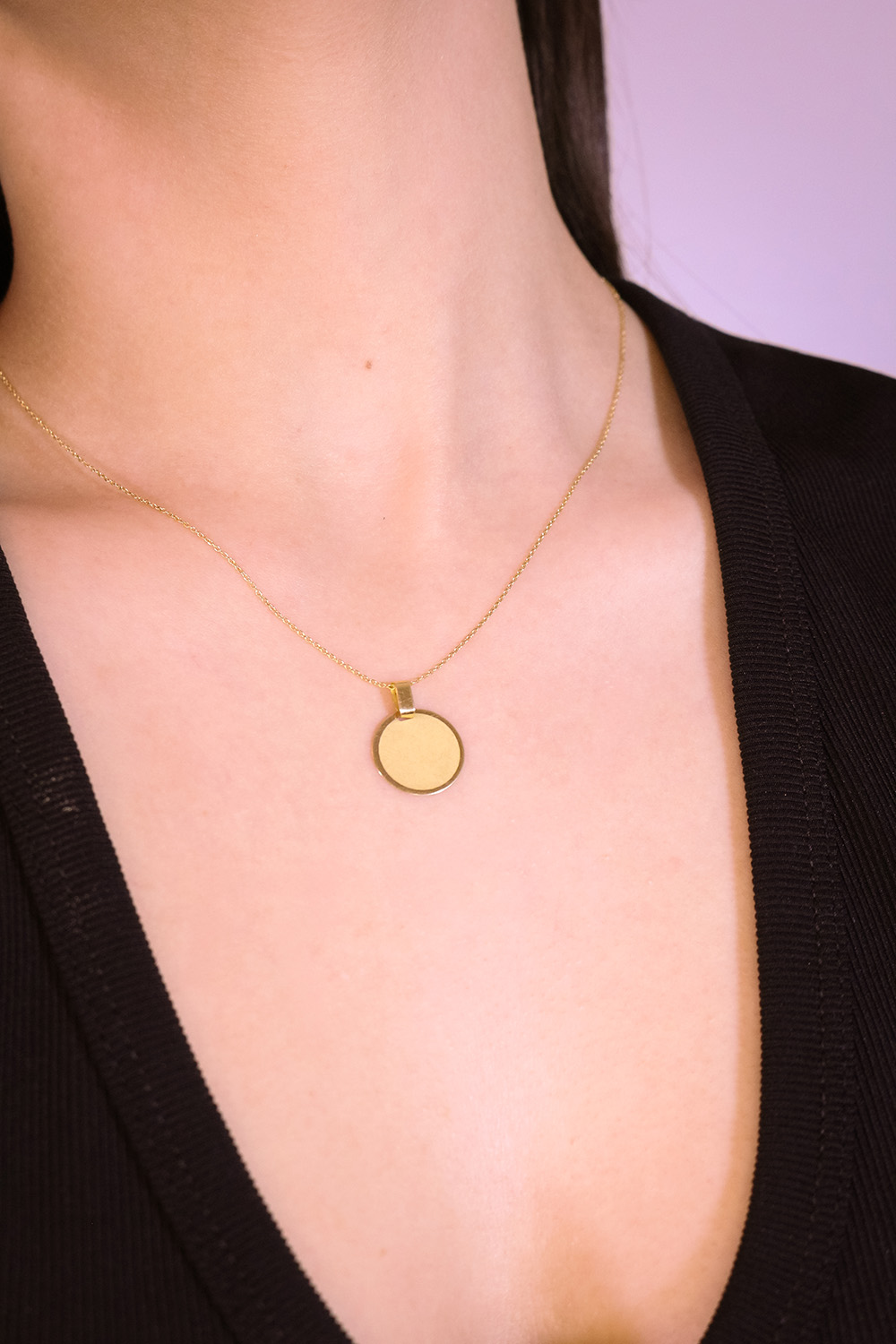 Hay recuerdos que merecen ser enmarcados en oro. Nuestra Medalla Circular Minimal es el símbolo de la perfección y la eternidad. La ausencia de textura o grabados en el diseño original centra toda la atención en el valor del metal y, más importante aún, en el significado que tú le añadas. Regala esta medalla como un símbolo de afecto y mira cómo se transforma en una joya única. Gracias a su acabado de alta calidad, es una pieza diseñada para durar y ser atesorada por generaciones.