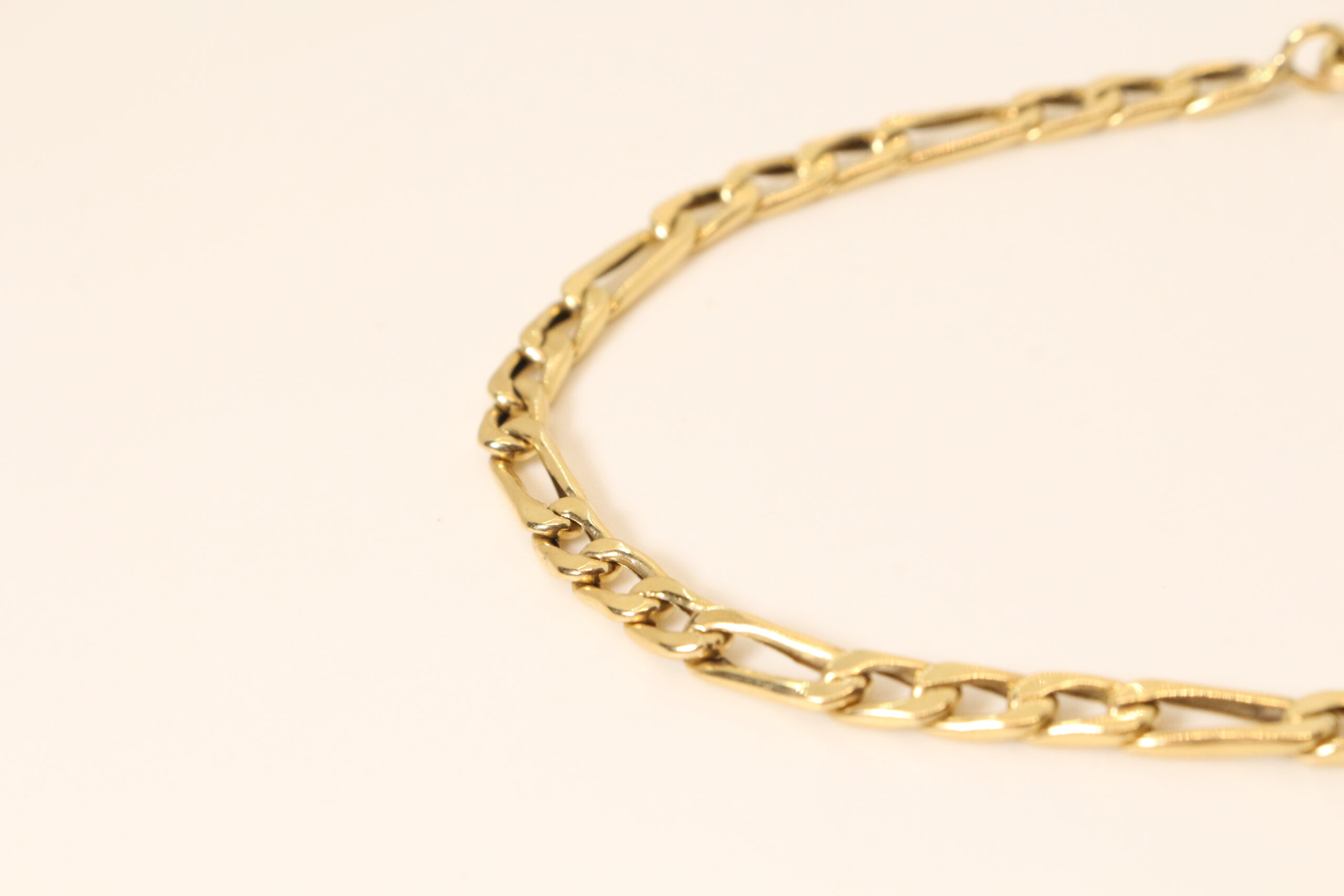 La armonía del diseño tradicional. La pulsera Figaro es una de las piezas más emblemáticas de la joyería internacional, reconocida por su característica secuencia de tres eslabones cortos seguidos de uno alargado. Esta alternancia rítmica no solo le otorga una fluidez excepcional sobre la muñeca, sino que también crea una estética equilibrada que combina la fuerza del metal con una elegancia sutil. Confeccionada con eslabones de acabado pulido a espejo, esta cadena es el máximo exponente de la versatilidad: es lo suficientemente sobria para el uso diario y lo suficientemente sofisticada para destacar en ocasiones especiales. Su diseño de perfil plano asegura un calce cómodo y natural, convirtiéndola en una pieza esencial que trasciende géneros y tendencias. Es, en esencia, la joya que define el estilo de quien aprecia los clásicos que nunca pierden su vigencia.