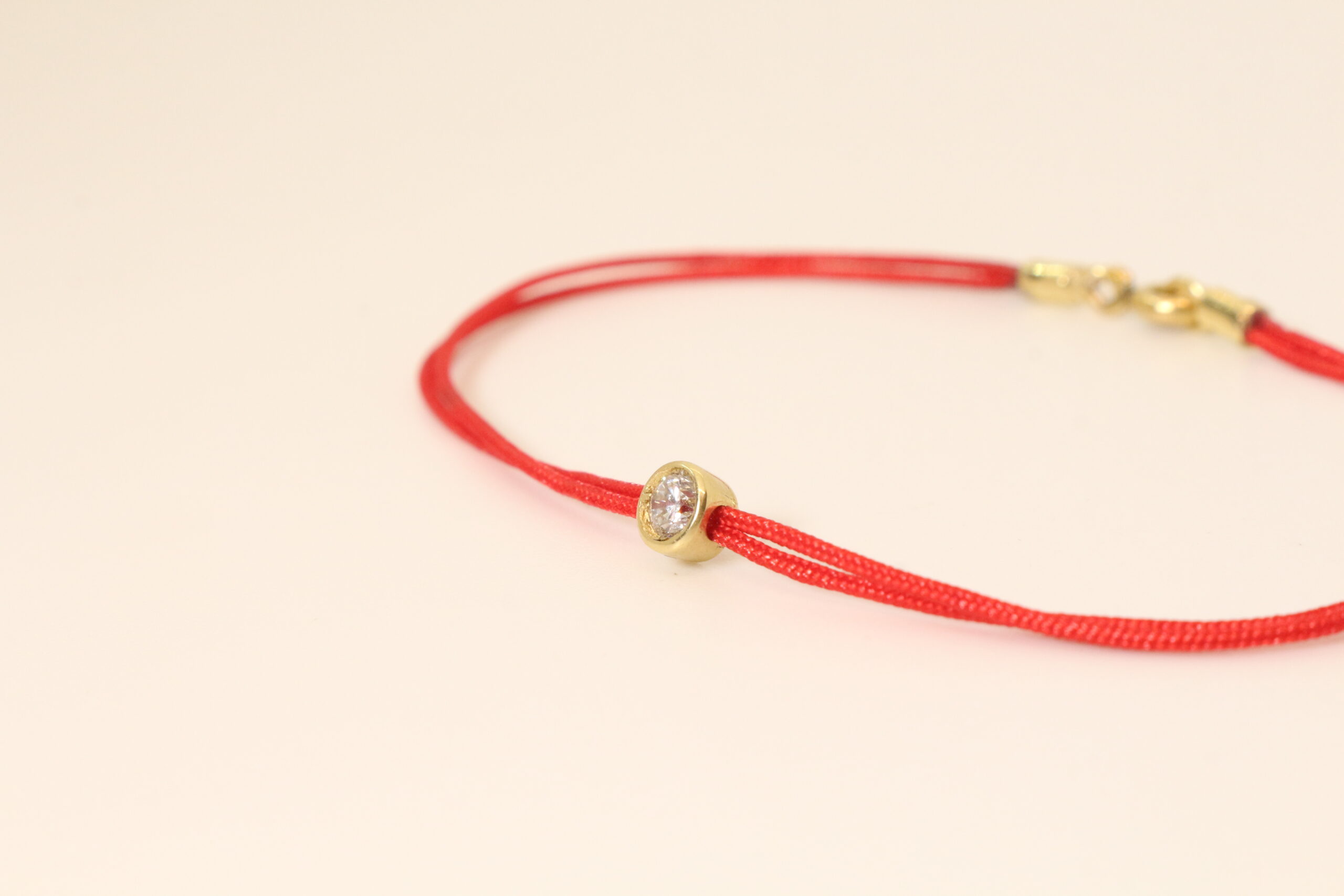 La luz que guía tu camino. La pulsera Kismet es mucho más que un accesorio; es un símbolo milenario de protección y buena fortuna diseñado para acompañarte en el día a día. Su base de hilo rojo vibrante, reconocido universalmente como un escudo contra las energías negativas, se eleva en esta versión exclusiva gracias a un refinado detalle de joyería. En el centro de la pieza descansa un punto de luz suspendido en un engaste de oro pulido, que captura y refleja la claridad en cada movimiento. Su diseño minimalista y de perfil bajo la hace ideal para un uso constante, convirtiéndose en una «segunda piel» que combina la potencia de un amuleto tradicional con la sofisticación de la alta joyería. Es la pieza perfecta para quienes creen en el poder de la intención y en la belleza de los detalles con propósito.