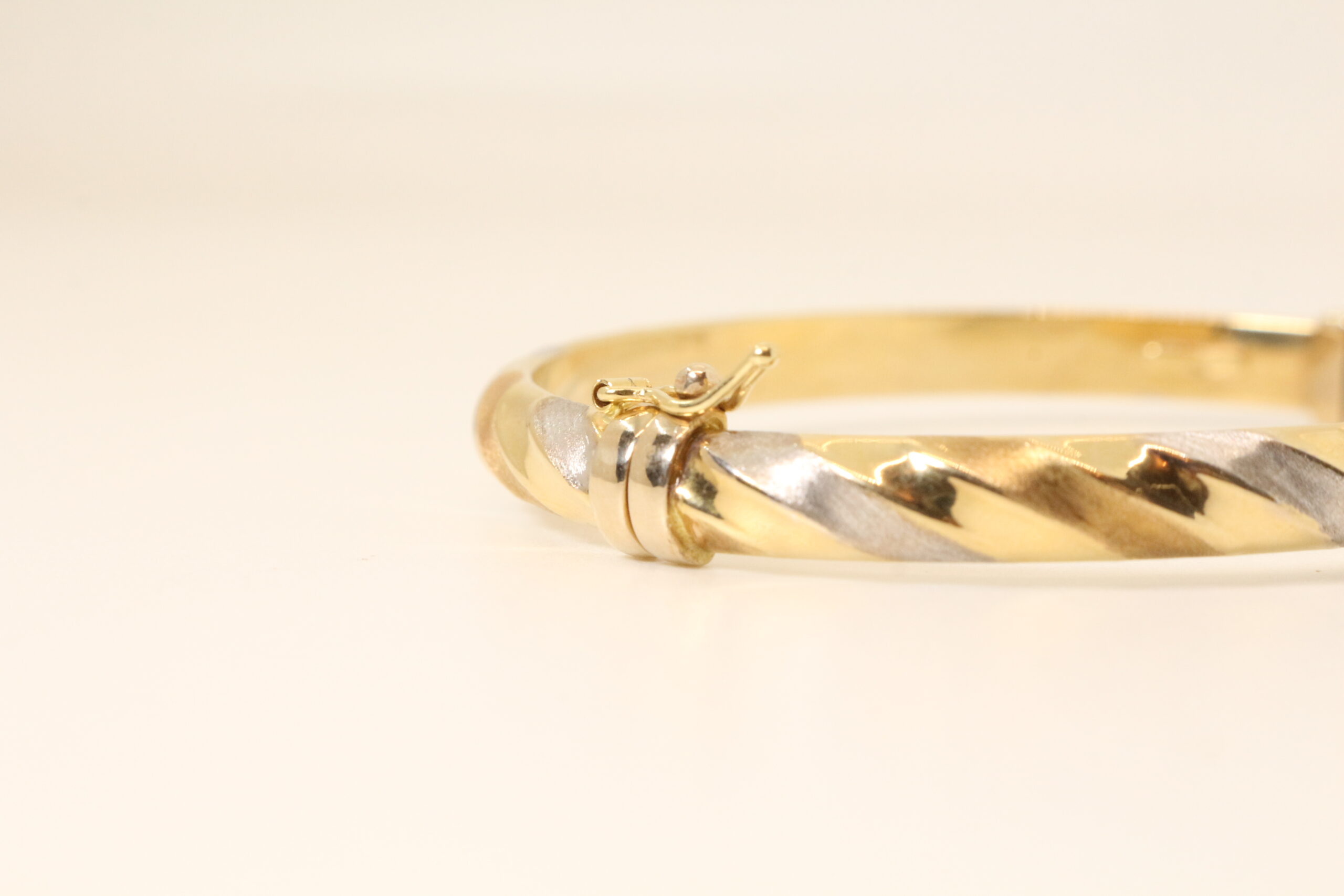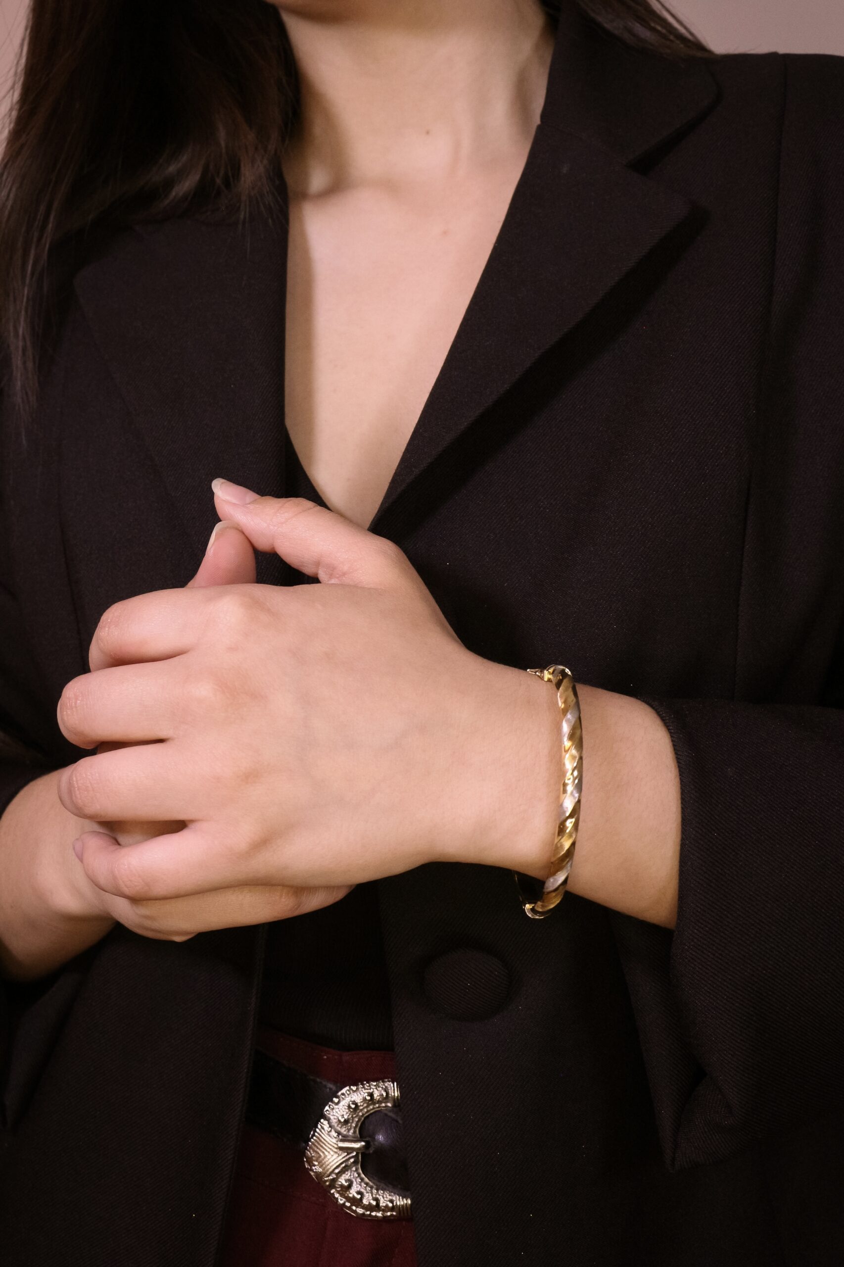 La fluidez del diseño convertida en metal. La pulsera Vento es una pieza de vanguardia que captura la esencia del movimiento a través de su exclusiva estructura helicoidal. Esta esclava rígida destaca por un relieve inclinado que envuelve la muñeca, creando un juego visual dinámico donde se entrelazan tres acabados magistrales: el brillo clásico del oro amarillo, la distinción del oro blanco, la suavidad del Oro Rojo y una textura satinada contemporanea. El diseño tricolor no solo aporta una versatilidad única para combinar con otras joyas, sino que también genera una profundidad y un volumen que cambian según el ángulo de la luz. Equipada con un cierre de seguridad lateral de alta precisión, la pulsera Vento es la elección ideal para quienes buscan una joya con carácter, fuerza y una elegancia que parece fluir con naturalidad.